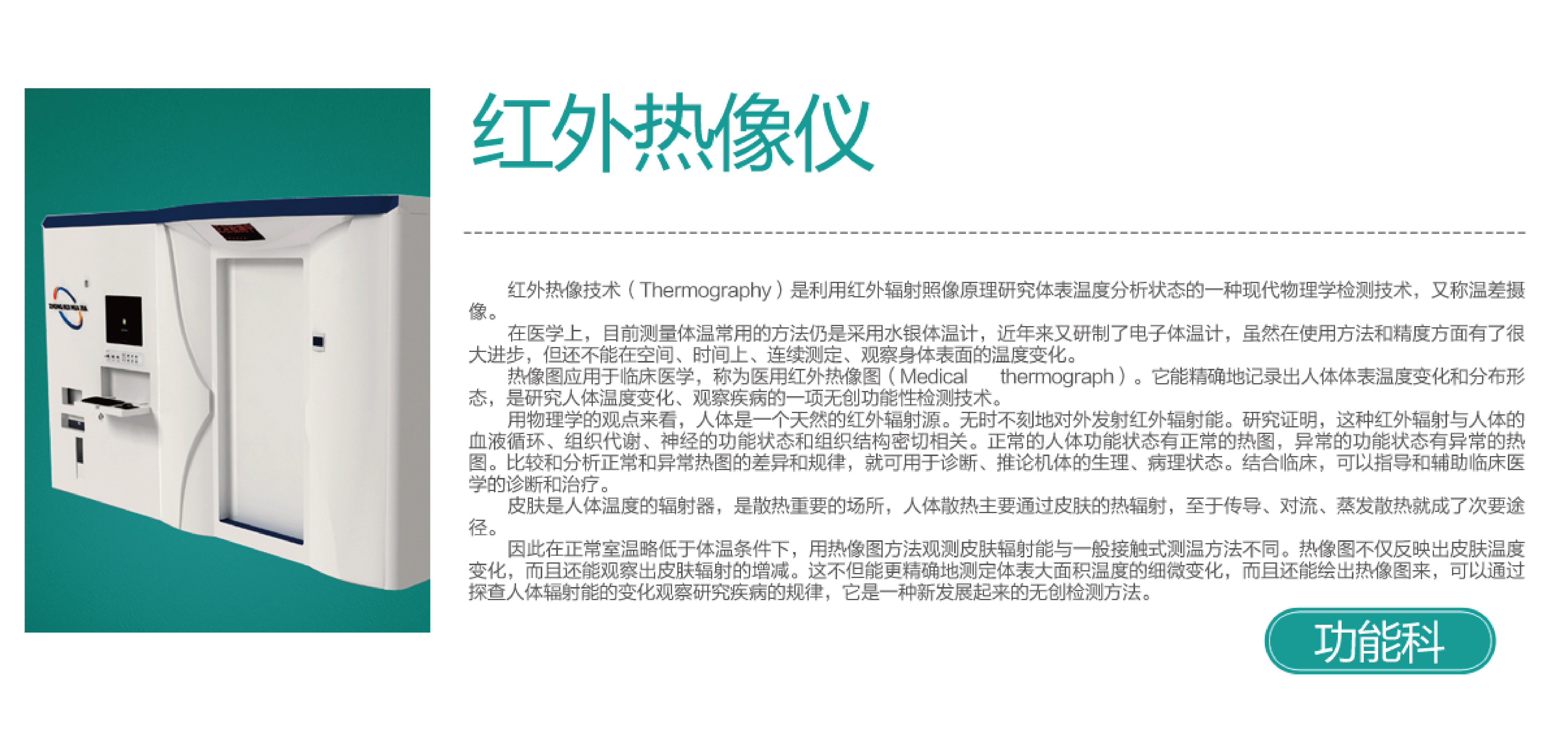 红外热像仪无辐射、无介入、无接触、无损伤、是一种绝对安全的诊断检测手段。主要用于早期重大疾病的筛查